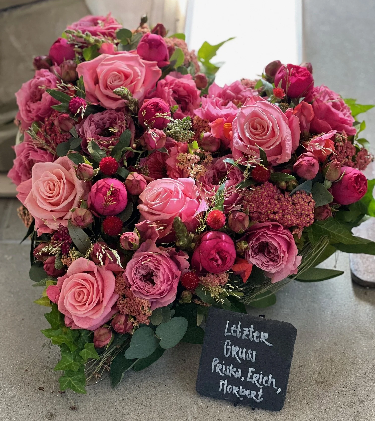 Gerne beraten wir Sie bei der Wahl der passenden Trauerfloristik – sei es bei Kränzen, Kirchendekorationen, Schleifentexten oder individuellen Blumengestecken für die Trauerfeier.