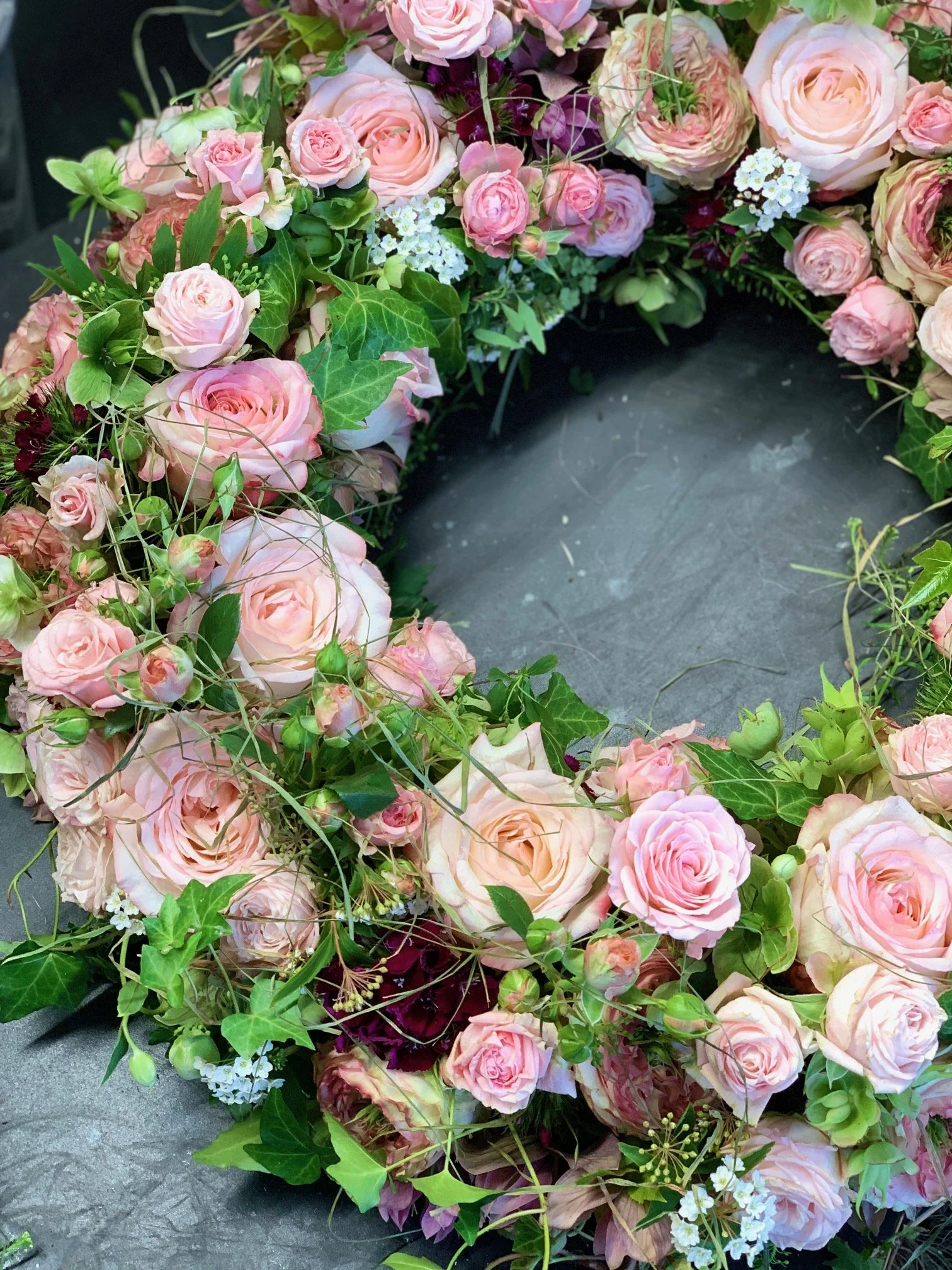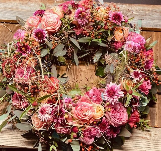 Ein Trauerkranz, ohne Anfang und Ende, ist ein traditionelles Symbol für das ewige Leben.