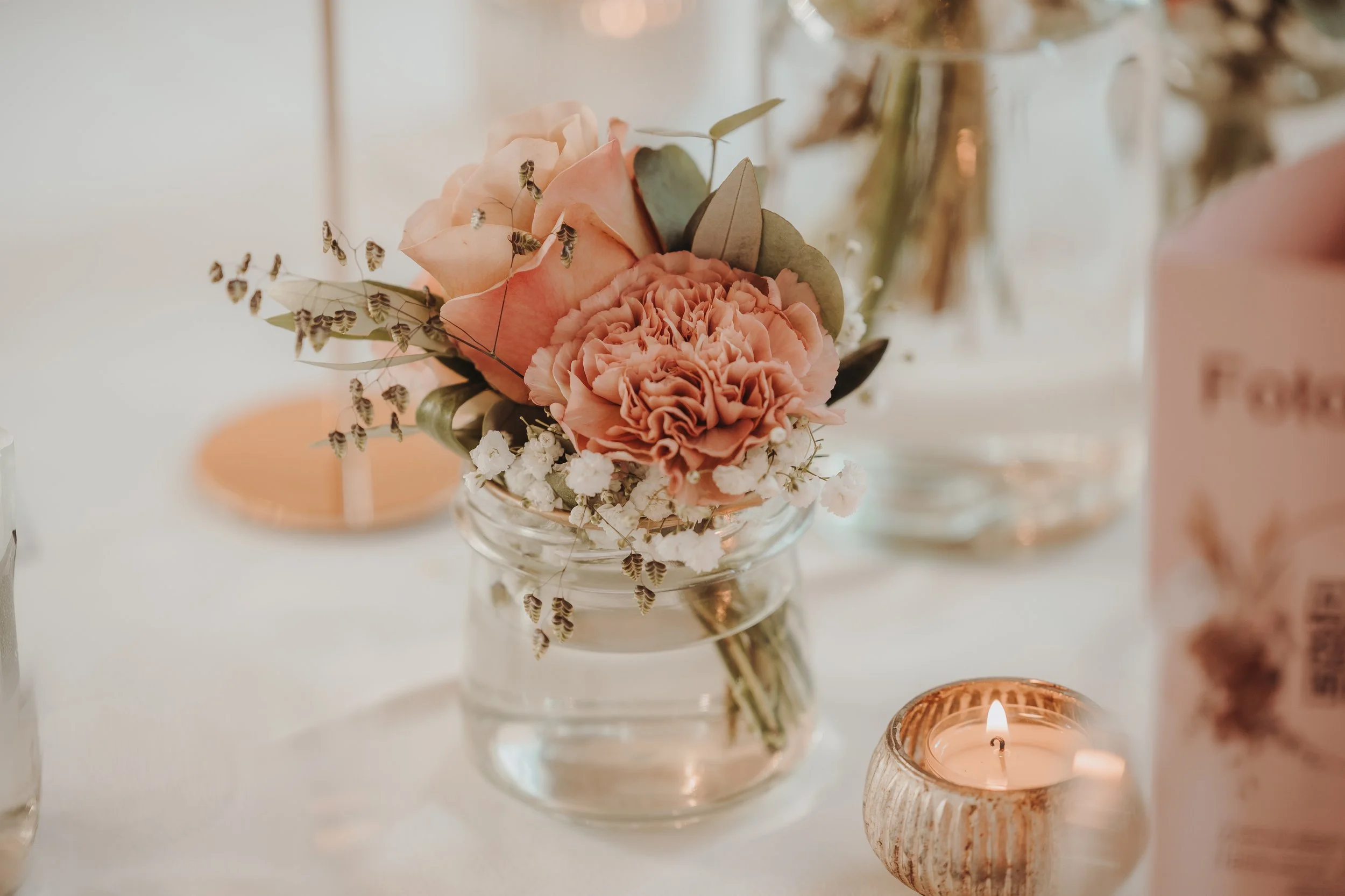 Liebevolle, zarte Farben unterstreichen diese Stilrichtung. Sehr oft werden Blumen in leichtem Rosa mit Weiss oder Apricot kombiniert.
